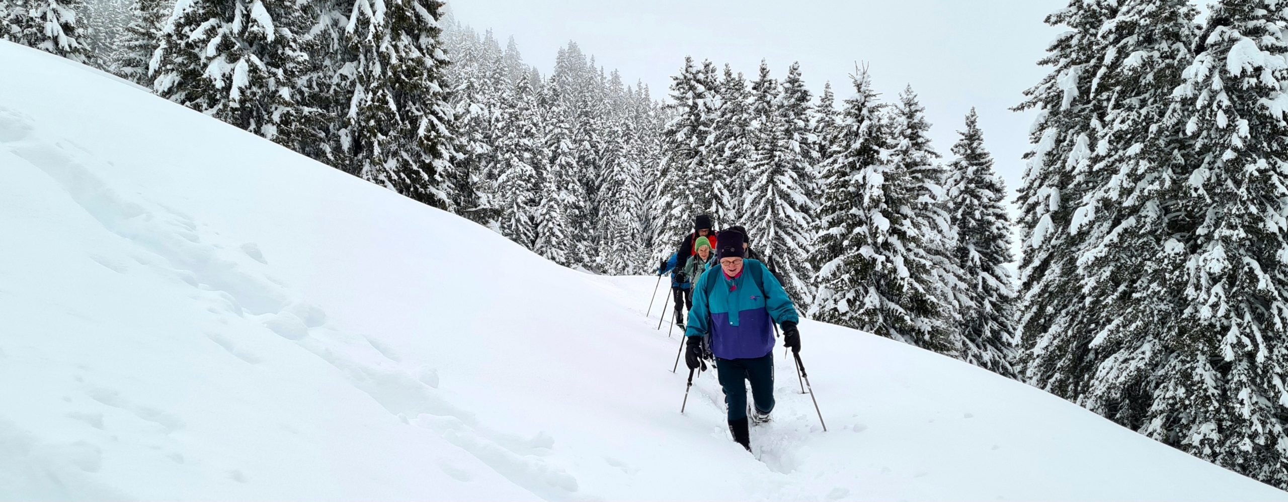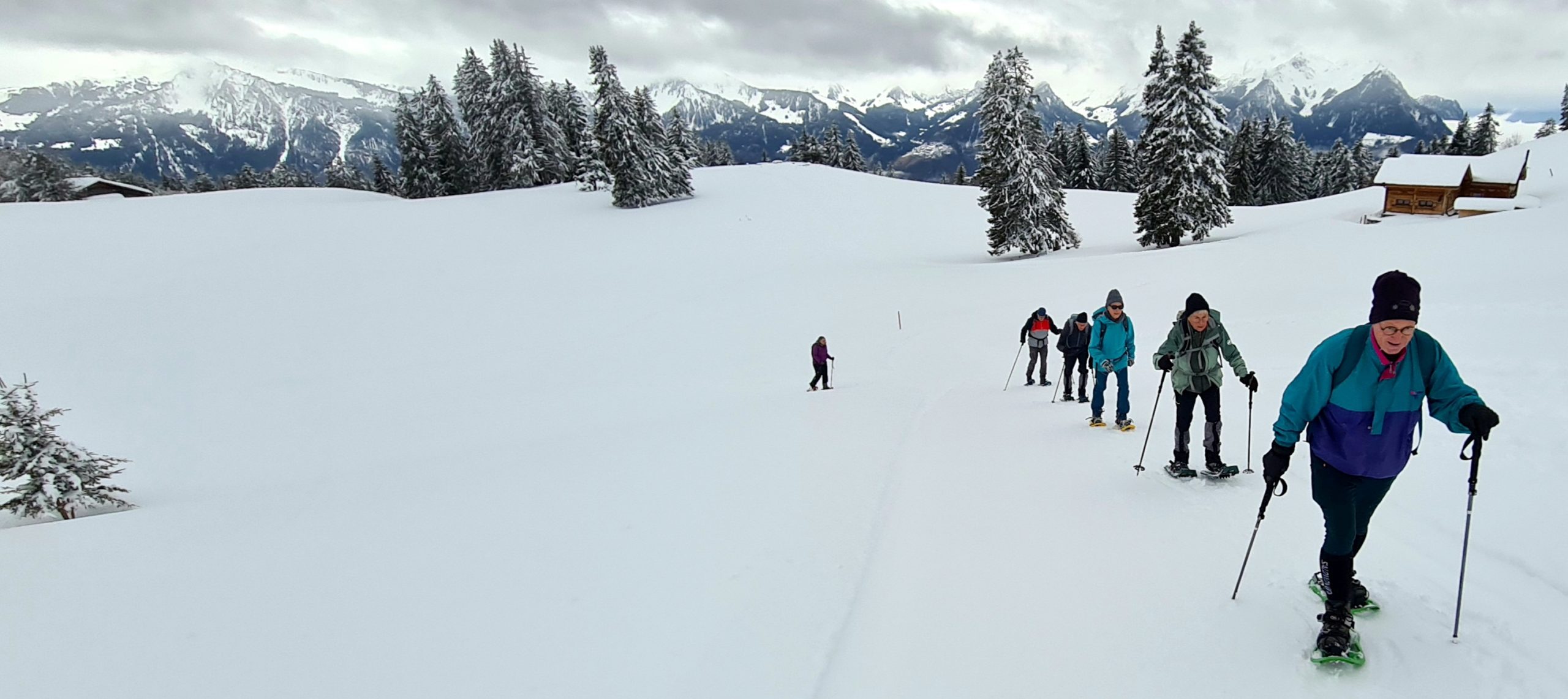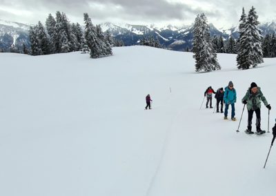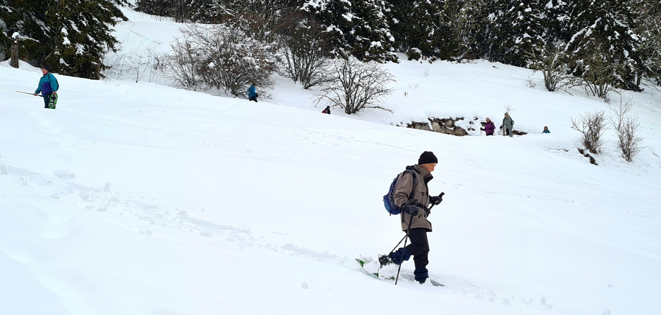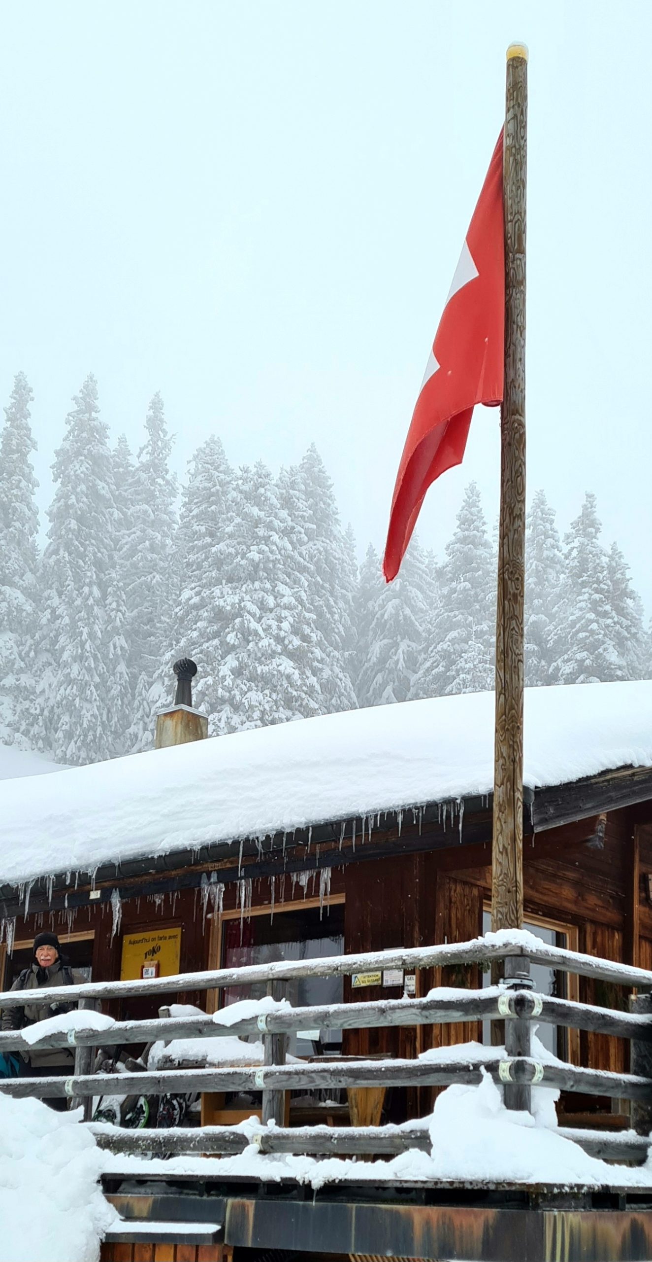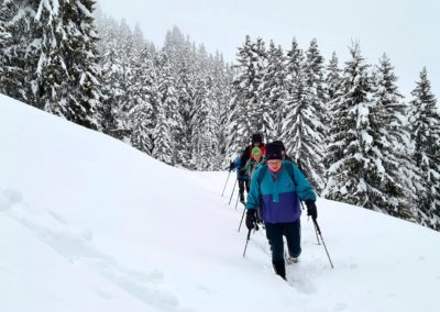 Les fortes chutes de neige des derniers jours (entre 80 et 120 cm) recommandent instamment l’usage de raquettes pour celles et ceux qui voudraient marcher sur les sentiers balisés mais pas toujours damés. Il est fortement conseillé de s’arrêter après un effort en montée. N’hésitez pas à ouvrir la porte d’un restaurant d’alpage pour y trouver de quoi vous sustenter (nourriture et boissons) et profiter de la convivialité des lieux. Les prix sont tout-à-fait raisonnables.